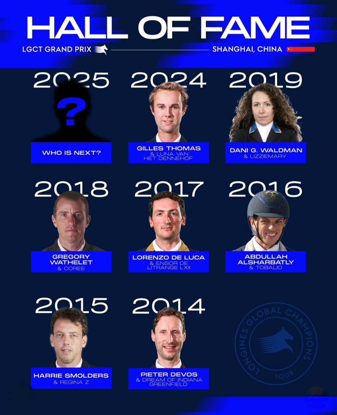 Además, los ganadores de ediciones anteriores también han dejado huella: en 2019, Danielle Goldstein se coronó campeona montando a Lizziemary, mientras que en 2018, el belga Gregory Wathelet alcanzó la victoria con Coree.