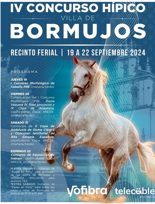 Durante los días 19 a 22 de septiembre, se celebrará en el recinto ferial de Bormujos (Sevilla) el IV Concurso Hípico Villa de Bormujos.
