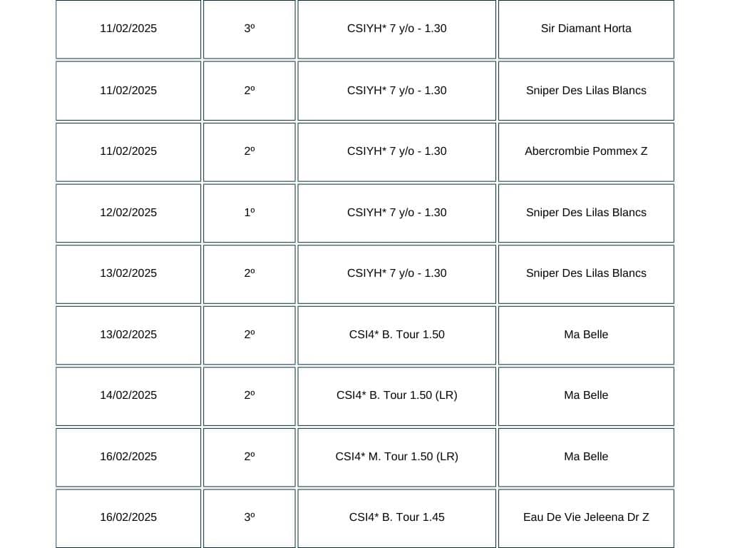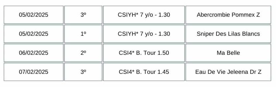Durante la primera semana del Andalucía Sunshine Tour, Kendra lideró la prueba para caballos jóvenes de 7 años con Sniper Des Lilas Blancs, mientras que con Abercrombie Pommex Z alcanzó la tercera posición.