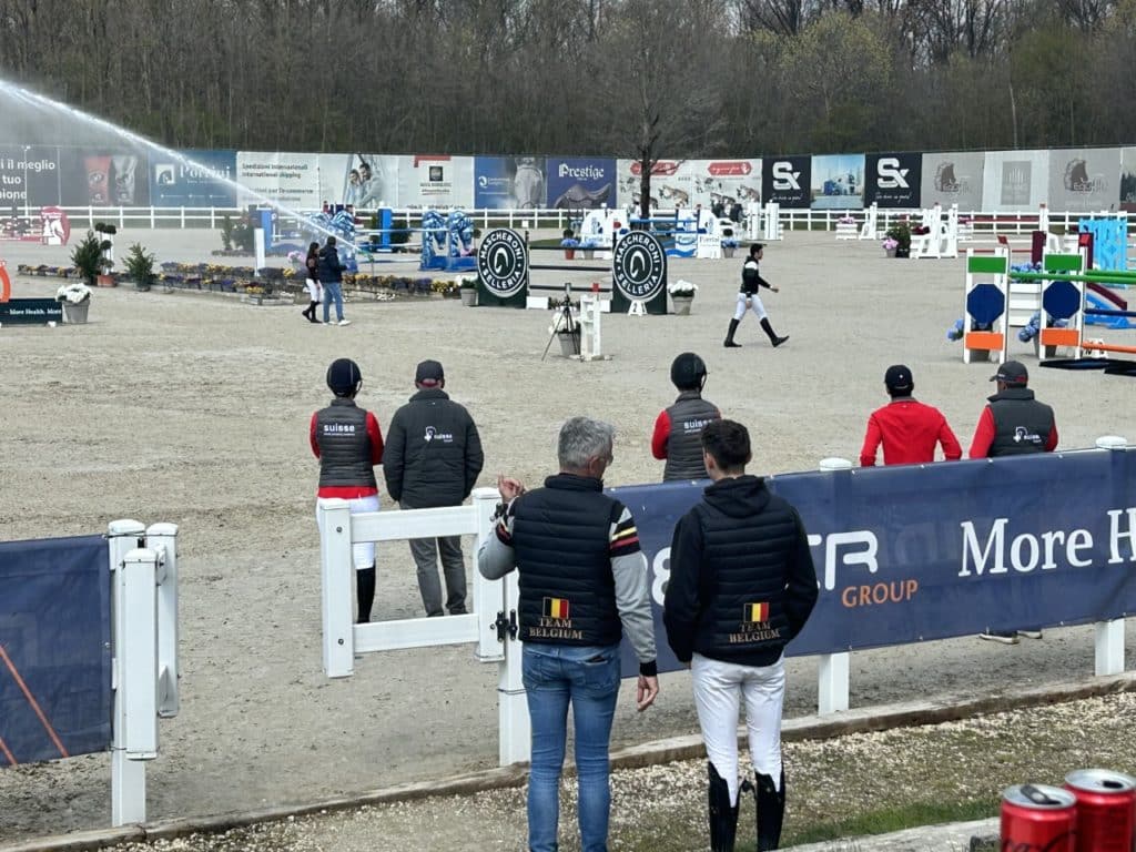 Tras la inspección veterinaria, se llevó a cabo el desfile por equipos, ese momento estelar donde padres, acompañantes y entrenadores nos volvíamos patriotas al salir nuestro país. Pues no sé cómo decirlo bonito, pero la representación española fue la más deficiente y menos elegante de los 16 países ahí congregados. Tal y como ponía en la convocatoria española, a los jinetes se les dio una gorra y un polo de manga corta. Si corrías con el equipo, tenías además derecho a una mantilla. Que no os engañen las fotos, quien tenía chaqueta de España es porque la obtuvo en otra ocasión o incluso que la heredó. Si no eras del equipo, podías tener 2 segundos de ilusión, de sentirte miembro de la participación española, para que acto seguido te quitasen la mantilla diciendo que únicamente había para los que corrían dentro de éste. Literal, esto pasó. ¿De verdad no da el presupuesto de la RFHE para poder suplir estas carencias?, ¿no eres parte del team Spain si no corres con el equipo? En Holanda y Bélgica, por citar solamente dos de los que consulté, contribuían con los gastos, pagaban el hotel a los jinetes, las inscripciones a todos, material corporativo a acompañantes y el jefe de equipo y entrenador se configuraban en una única persona. Aquí he visto a padres pagar la matrícula y hacer malabares con el transporte. ¿Cuánto le cuesta a un padre que su hijo salte en Gorla? Un sueldo medio mensual. Transporte, comidas, gastos del entrenador, inscripción si no va con el equipo, hotel… Todo esto choca con el despligue de gente que hace la RFHE. Lástima el esfuerzo de algunas familias, cuando de antemano es muy previsible quiénes van a estar en el Campeonato de Europa.