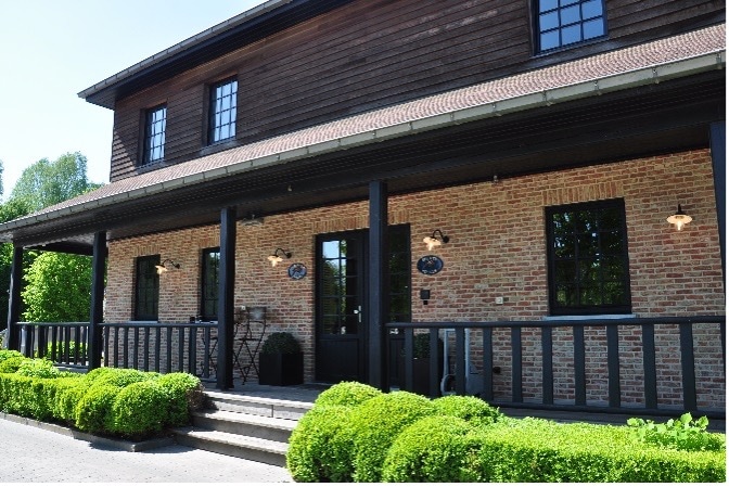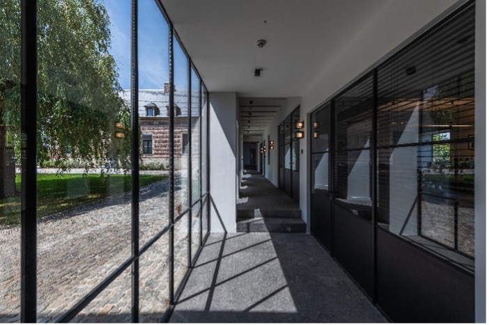 El estilo muy moderno del interior de los edificios y los establos, mezclado con la piedra roja, está inspirado en el estilo belga/holandés. En el interior, en las oficinas del grupo, encontramos un estilo muy puro: espacios abiertos, grandes ventanales, mucha madera, techos altos, espacios luminosos, colores muy sobrios. Los interiores son tan suntuosos como los exteriores.